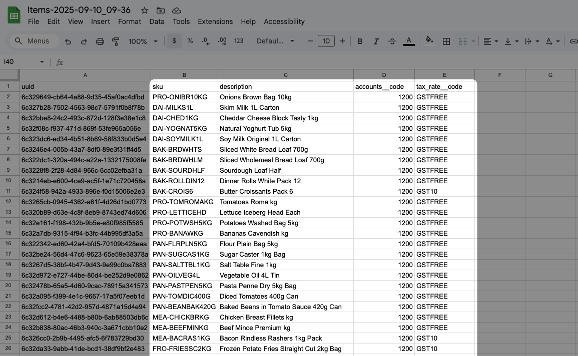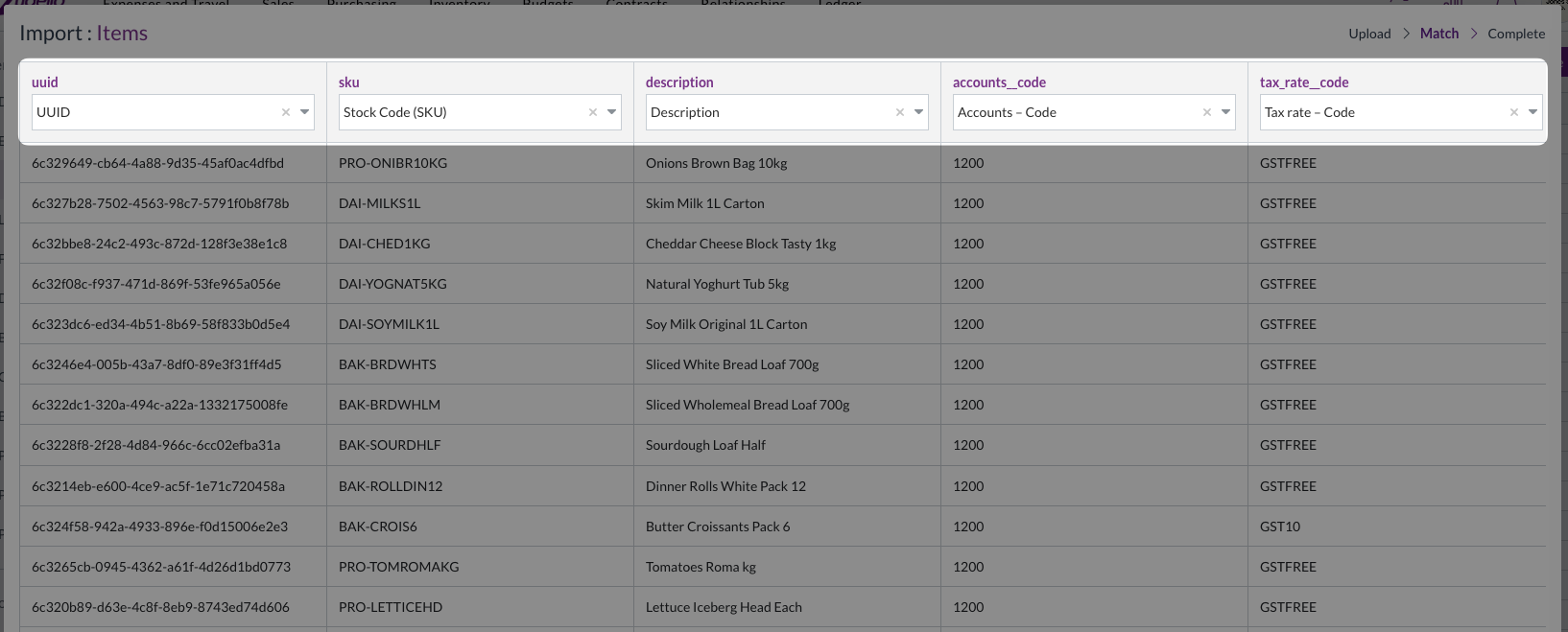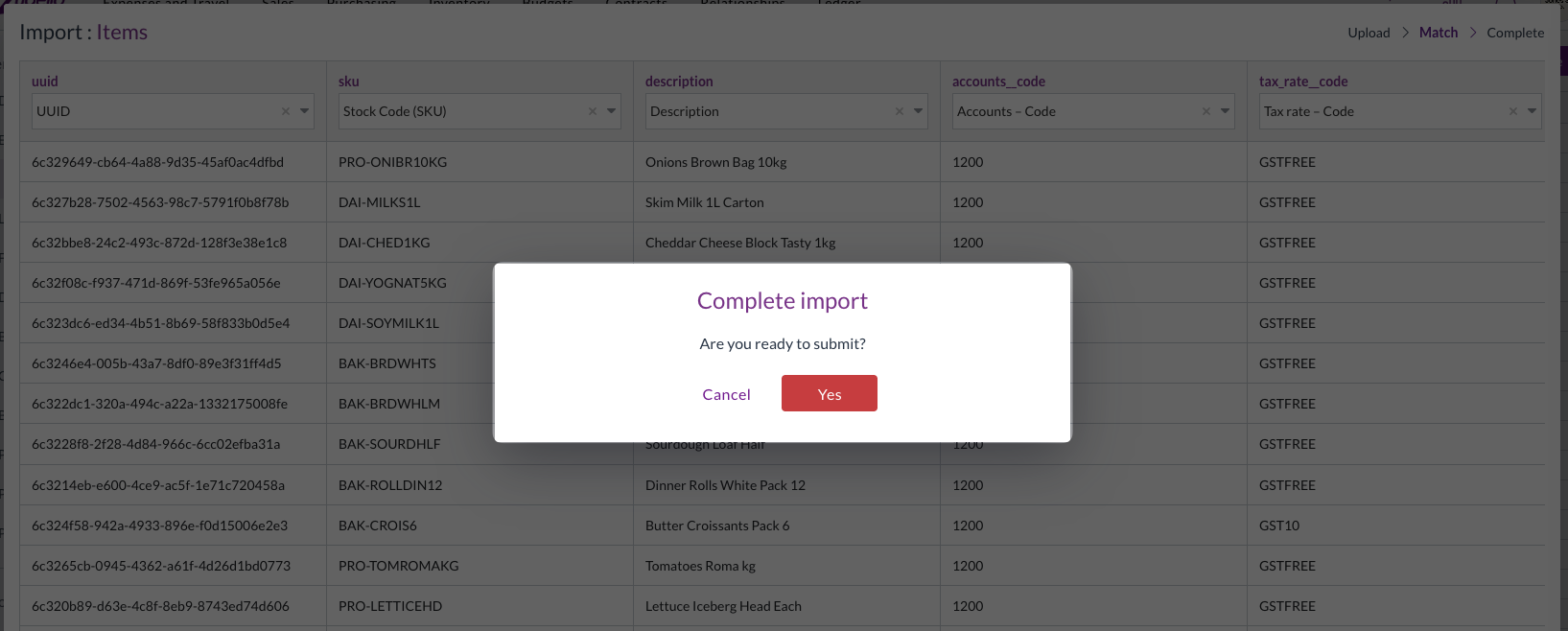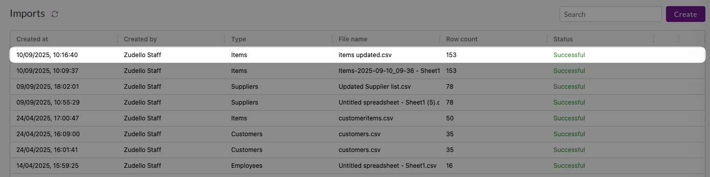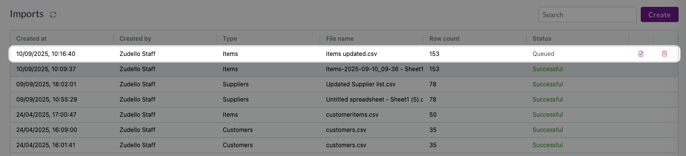 Zudello's importing feature allows you to easily update default coding for your item catalogue in bulk.
