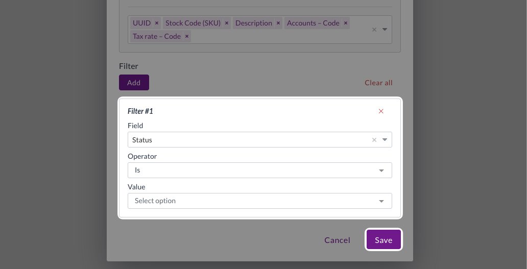 The Stock Code (SKU) and Description fields are for reference only, to make it easier for you to find and filter items.