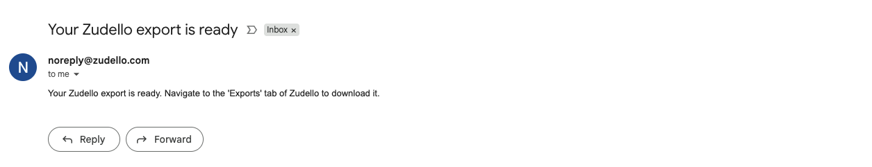 - Exports may take several minutes to generate. You can move to a different page and continue with your work, and the export will continue to generate in the background. You will receive an email notification once the export is ready for download.