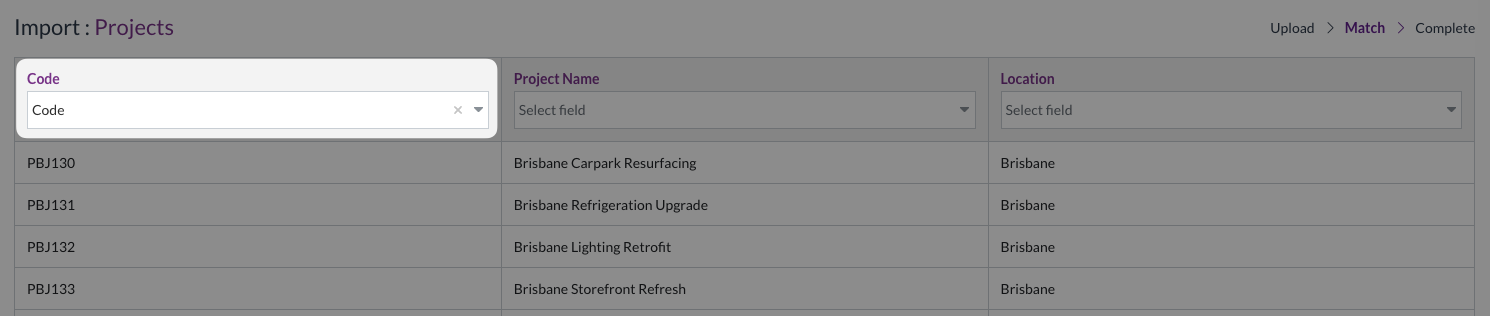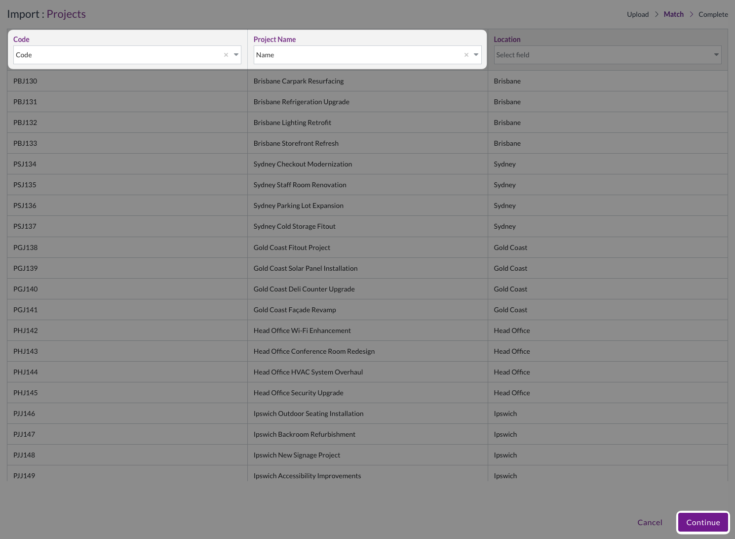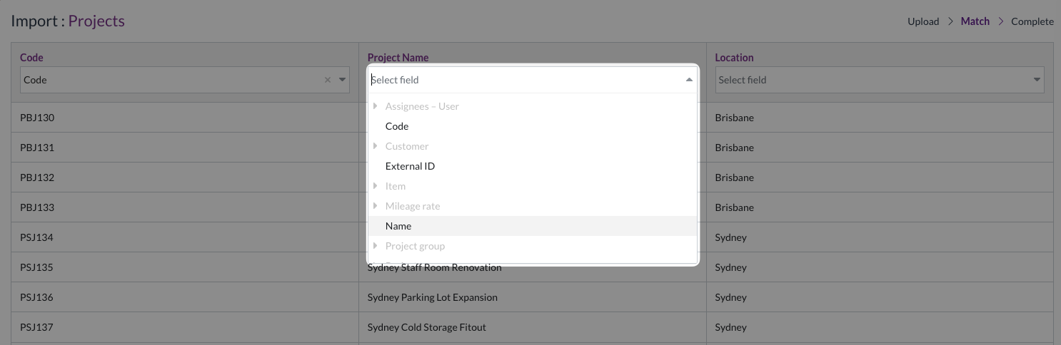 - Map remaining columns by selecting the relevant field from the drop-down menu