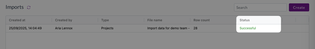 - Optionally, select from the Status dropdown to apply one status to all imported records