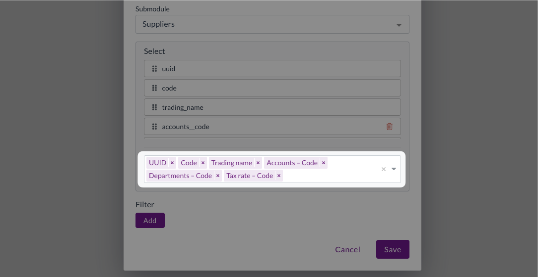 - E.g. If you are updating supplier coding for accounts, departments, and tax rates, select: