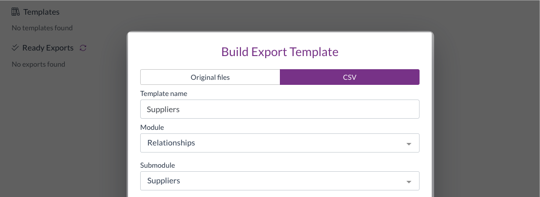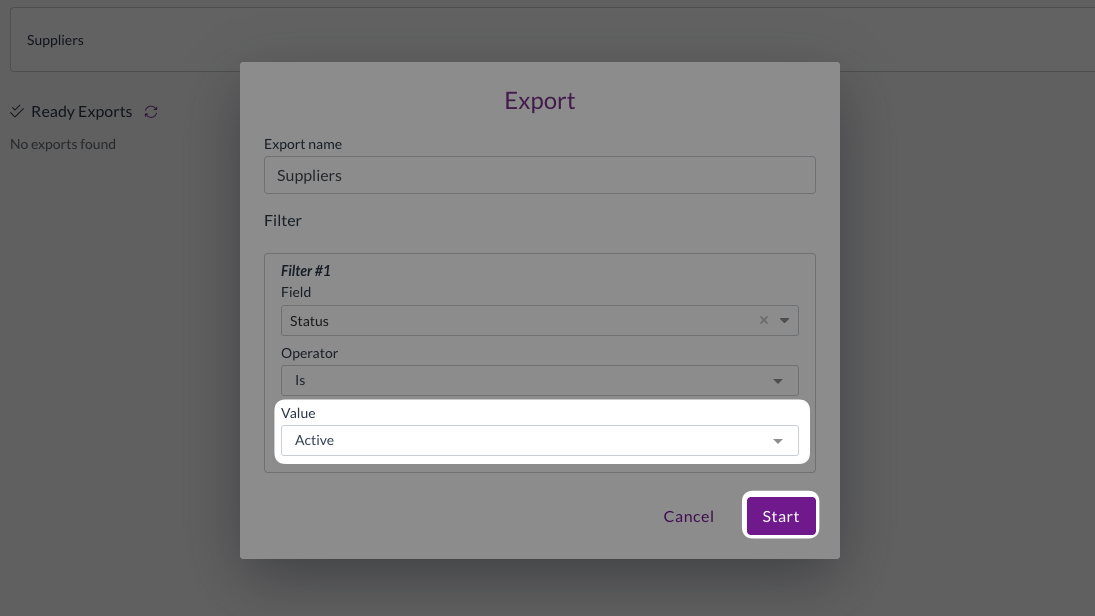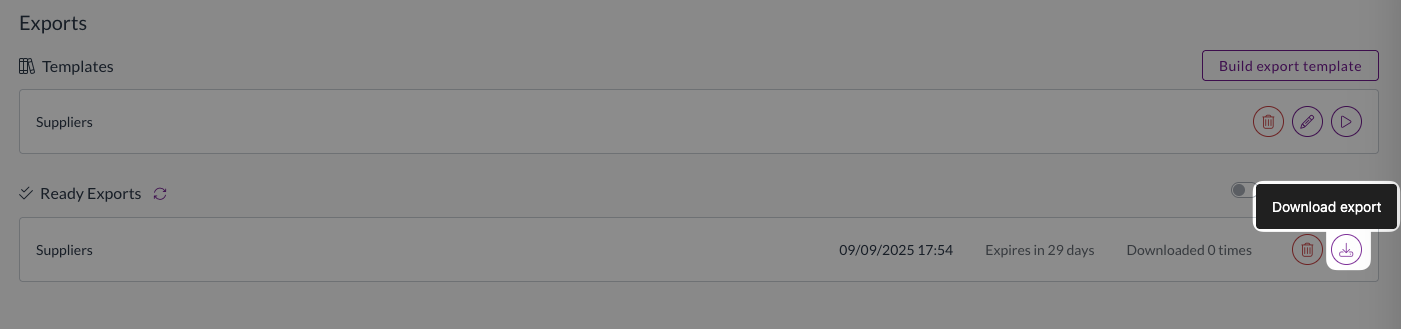 - Exports may take several minutes to generate. You can move to a different page and continue with your work, and the export will continue to generate in the background.