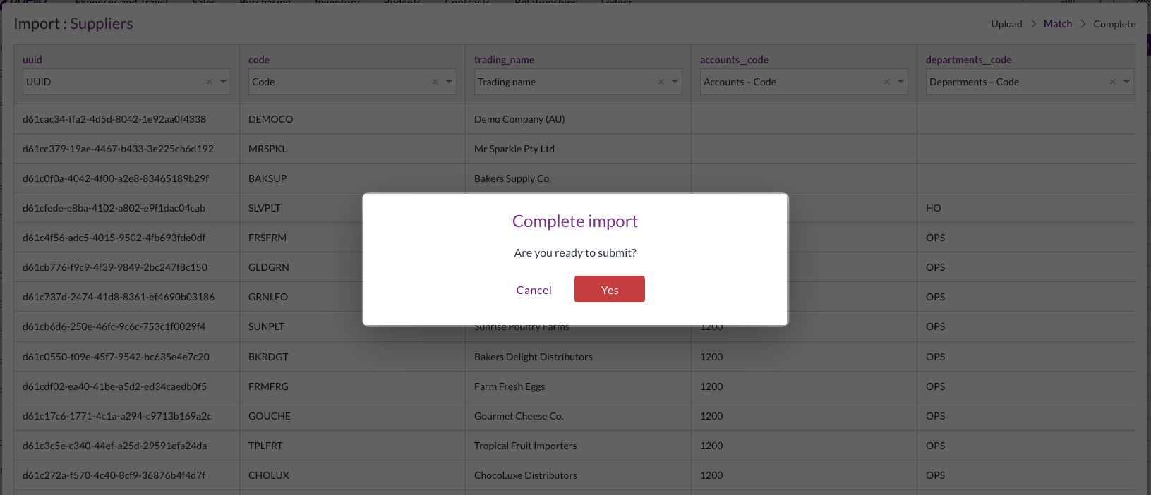 Now that you have edited your supplier data, you can import it in bulk to apply all changes at once: